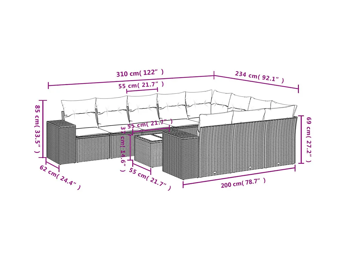 Set Divani da Giardino 11 pz con Cuscini in Polyrattan Grigio