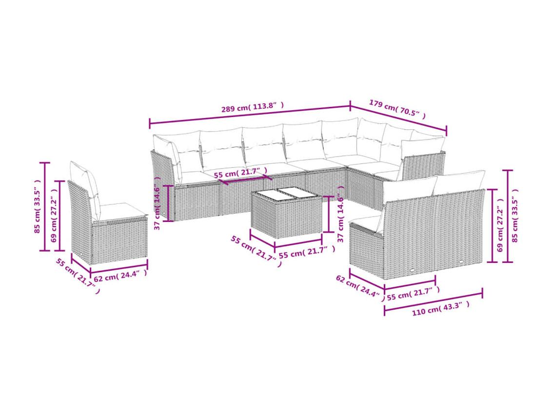 Set Divani da Giardino 11 pz con Cuscini Beige in Polyrattan