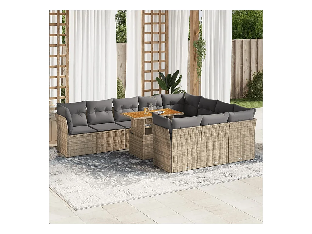 Set Divani da Giardino 11pz con Cuscini Beige Acacia Polyrattan