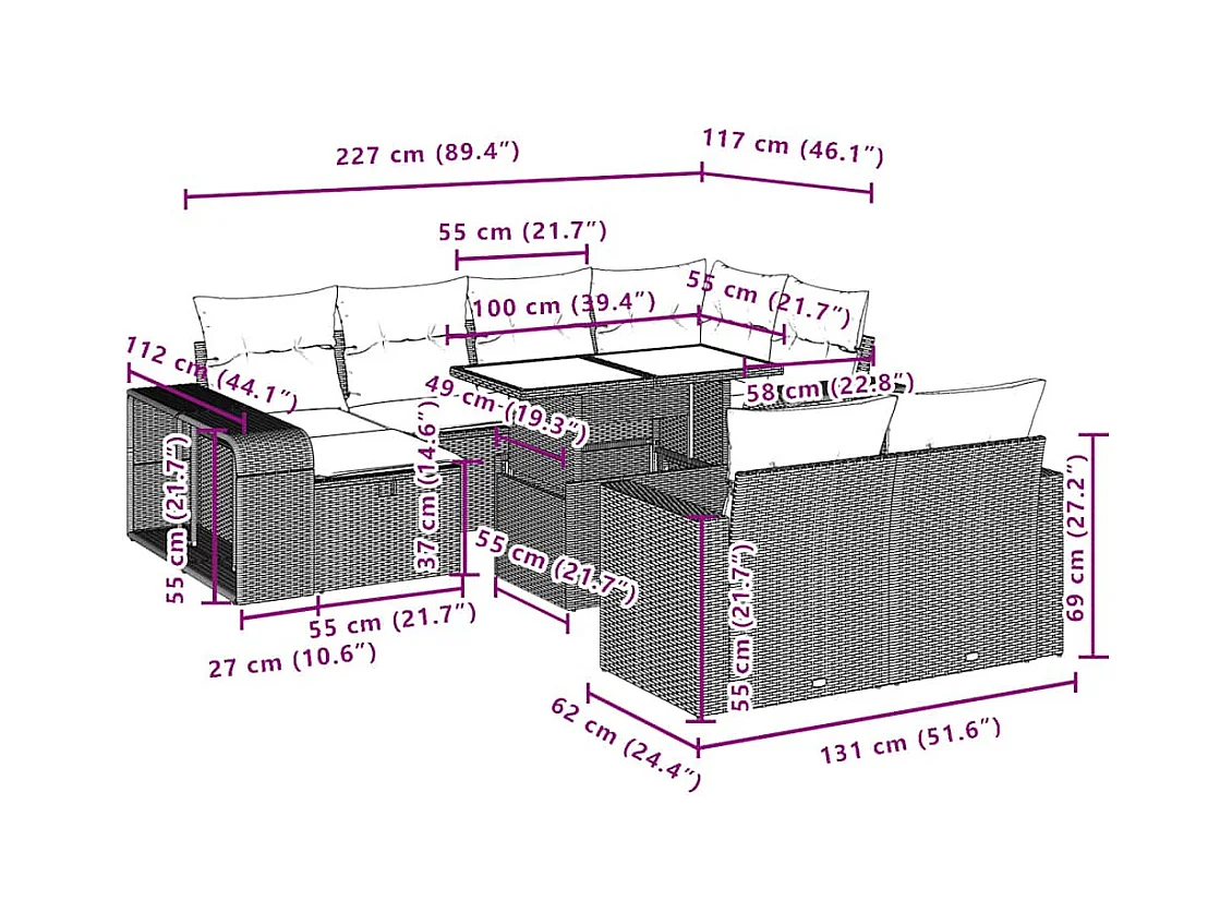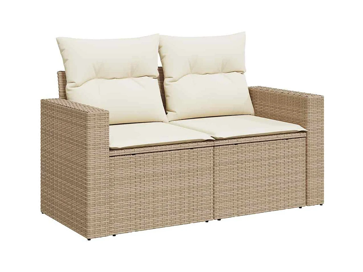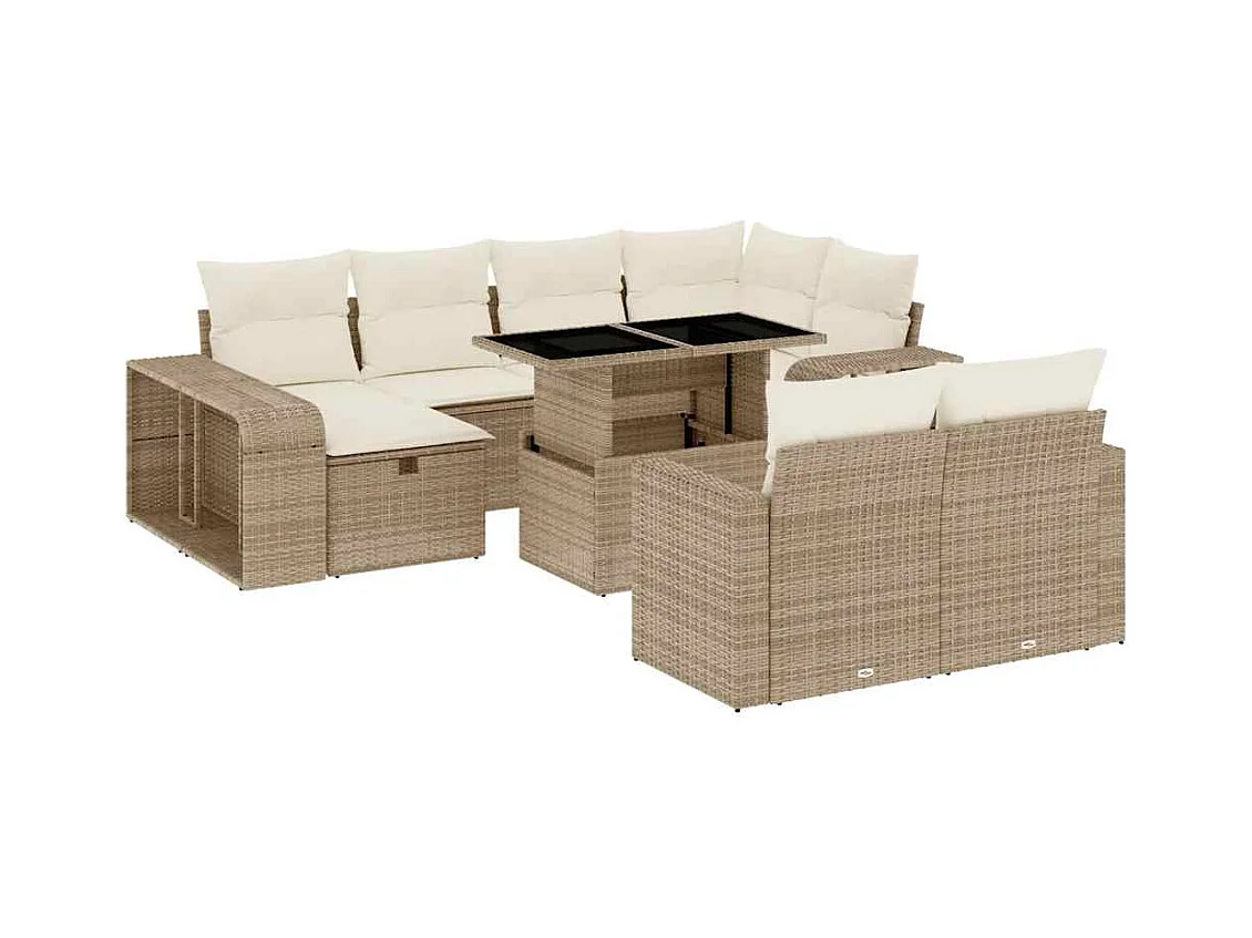 Set Divano da Giardino 9 pz con Cuscini Beige in Polyrattan