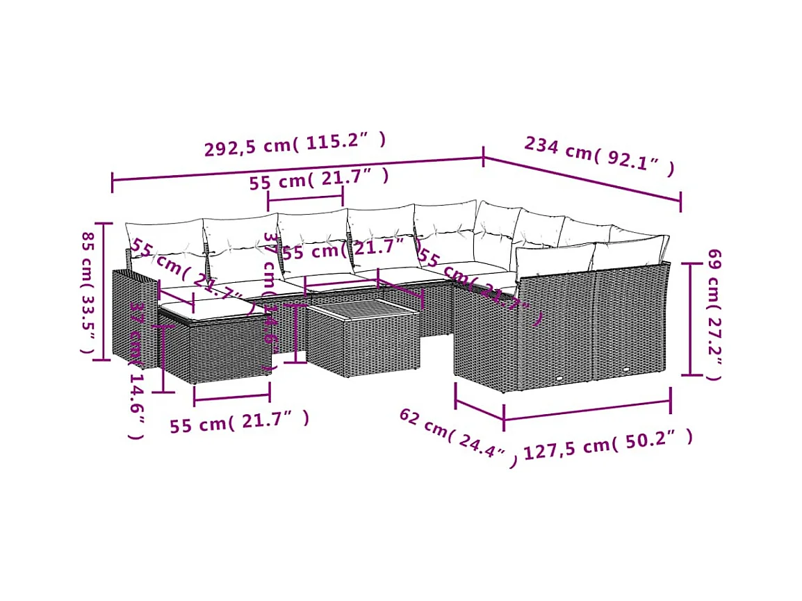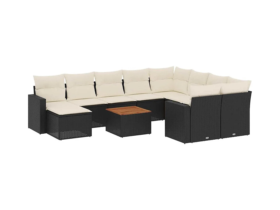 Set Divani da Giardino 11 pz con Cuscini in Polyrattan Nero
