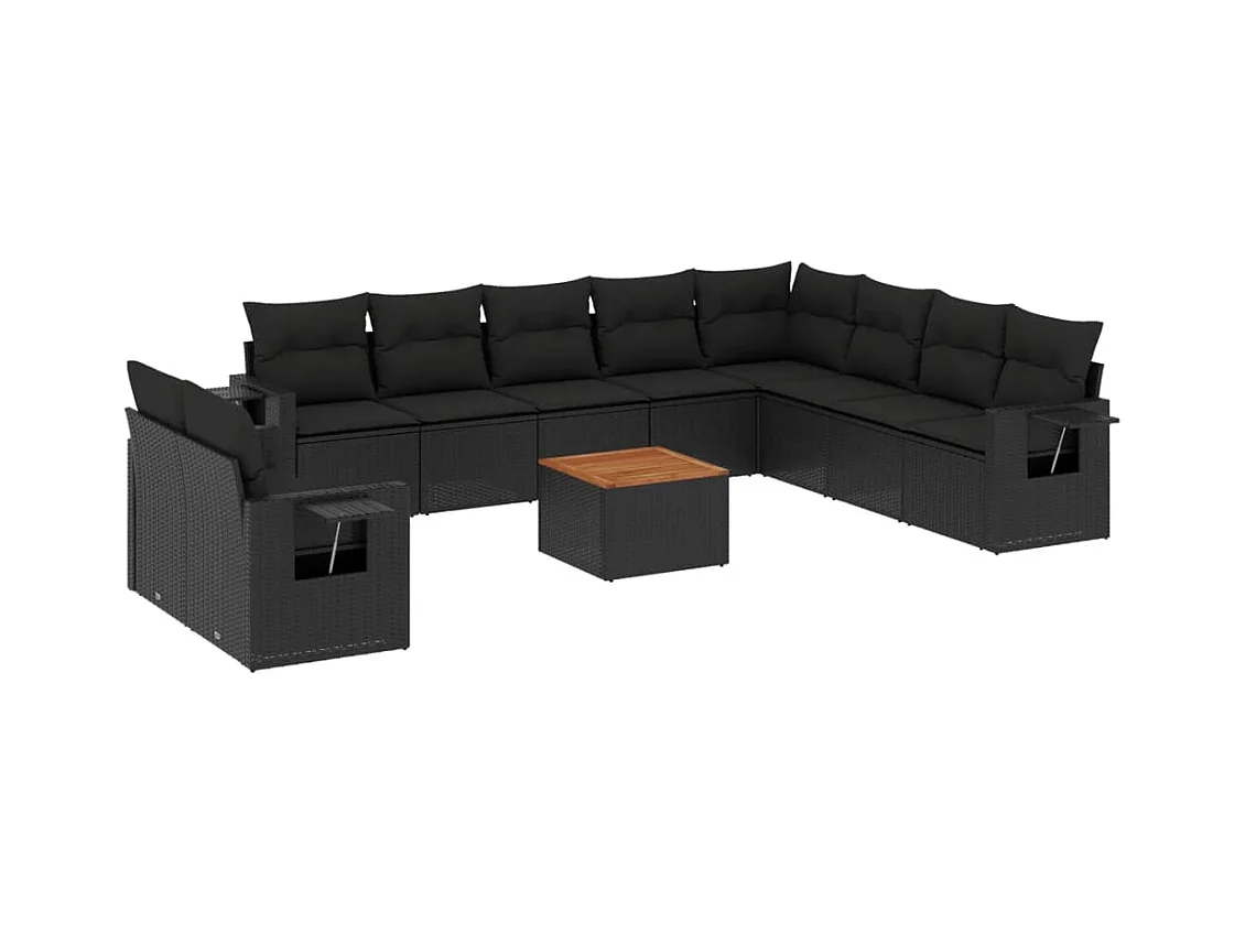Mobili da giardino da 11 pezzi con cuscini in resina intrecciata nera