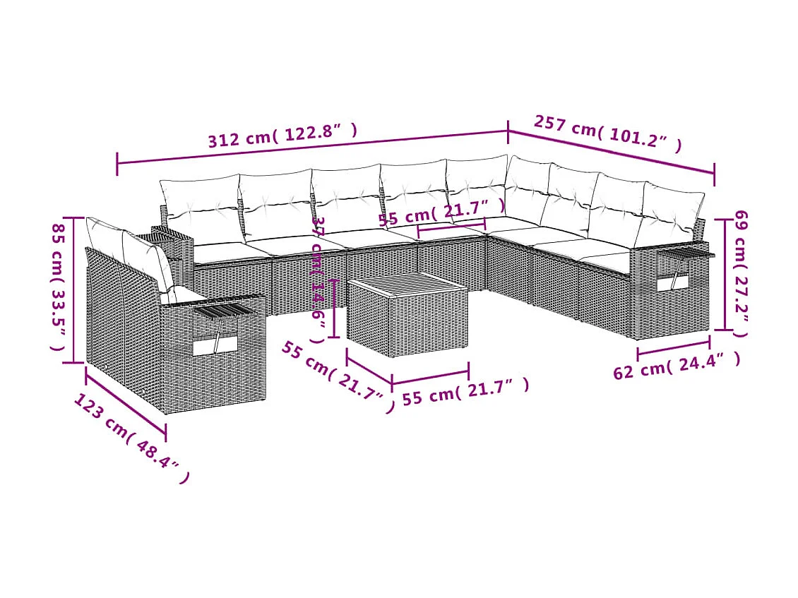Mobili da giardino da 12 pezzi con cuscini in resina intrecciata nera