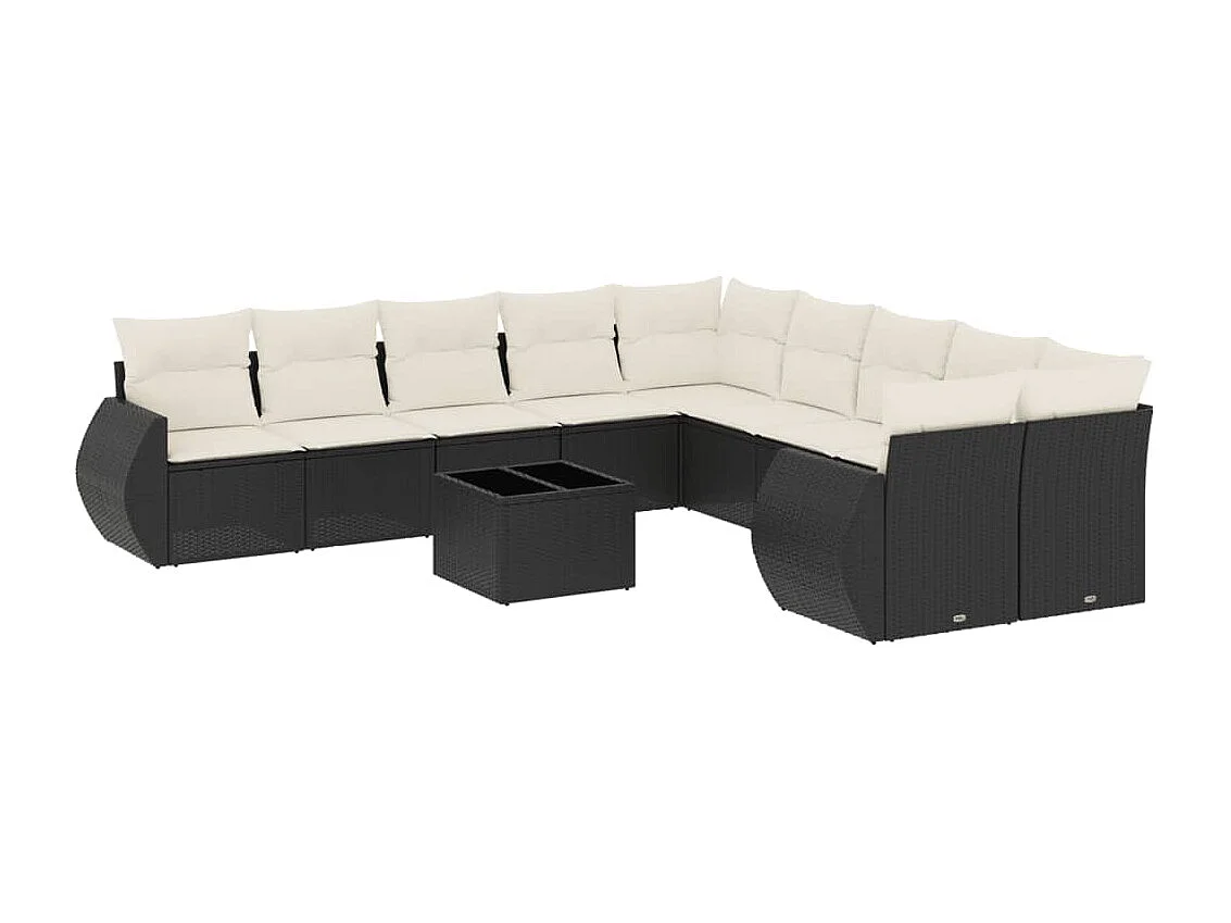 Mobili da giardino da 12 pezzi con cuscini in resina intrecciata nera