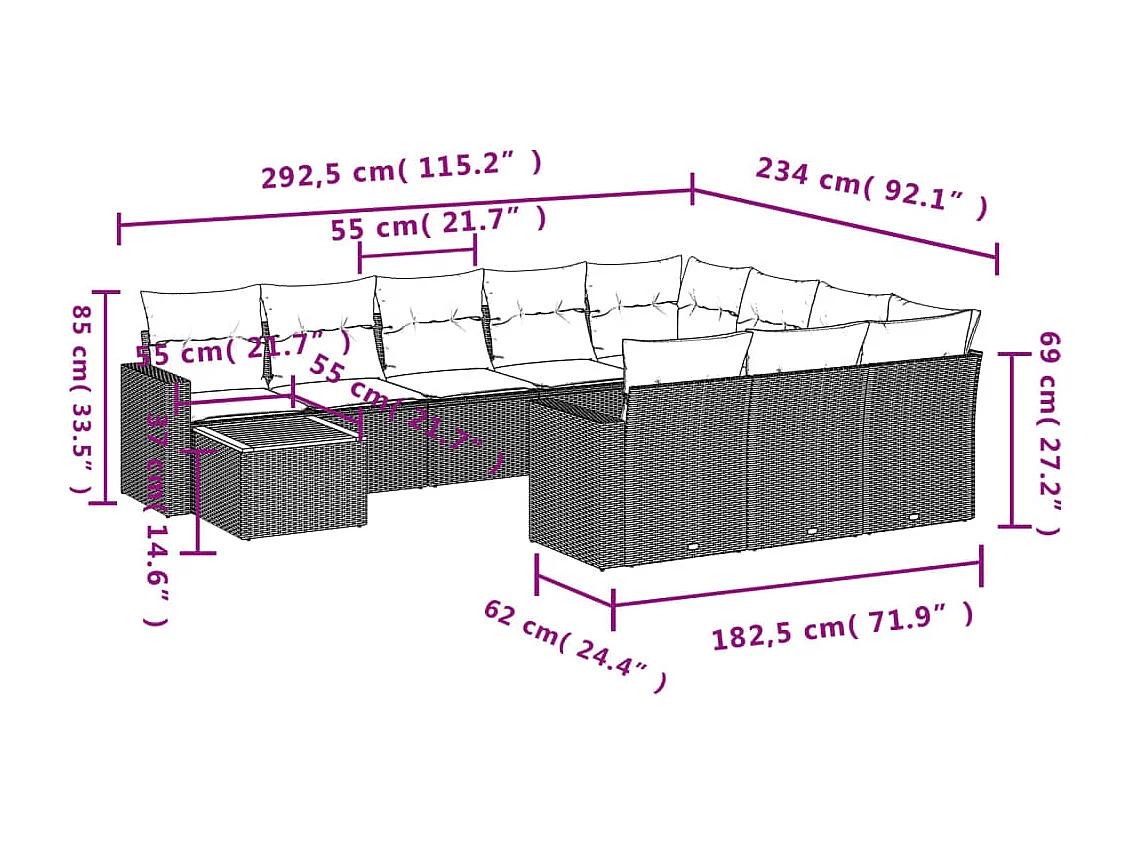 Mobili da giardino da 11 pezzi con cuscini in resina intrecciata nera