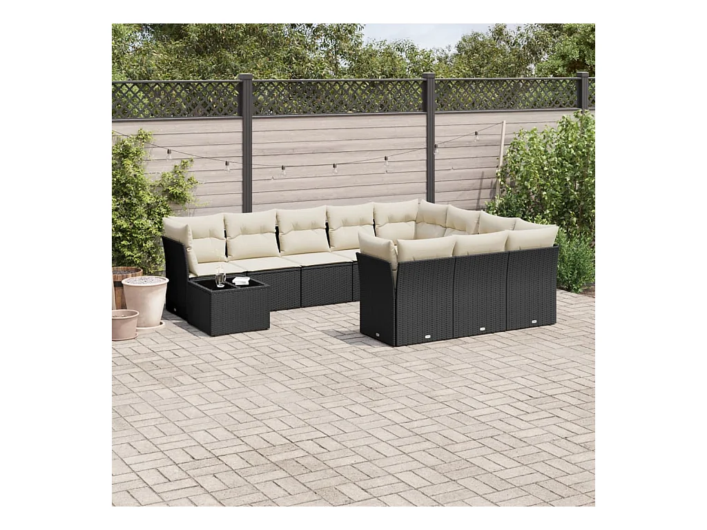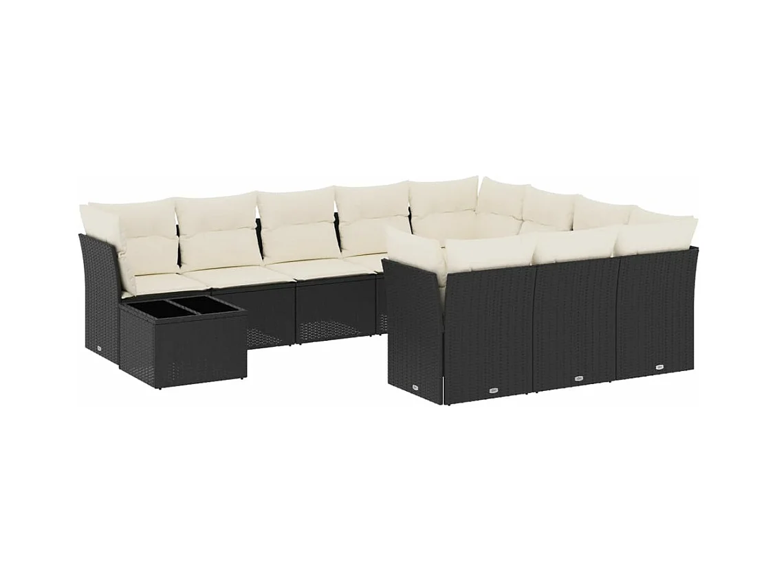 Set Divani da Giardino 11 pz con Cuscini in Polyrattan Nero