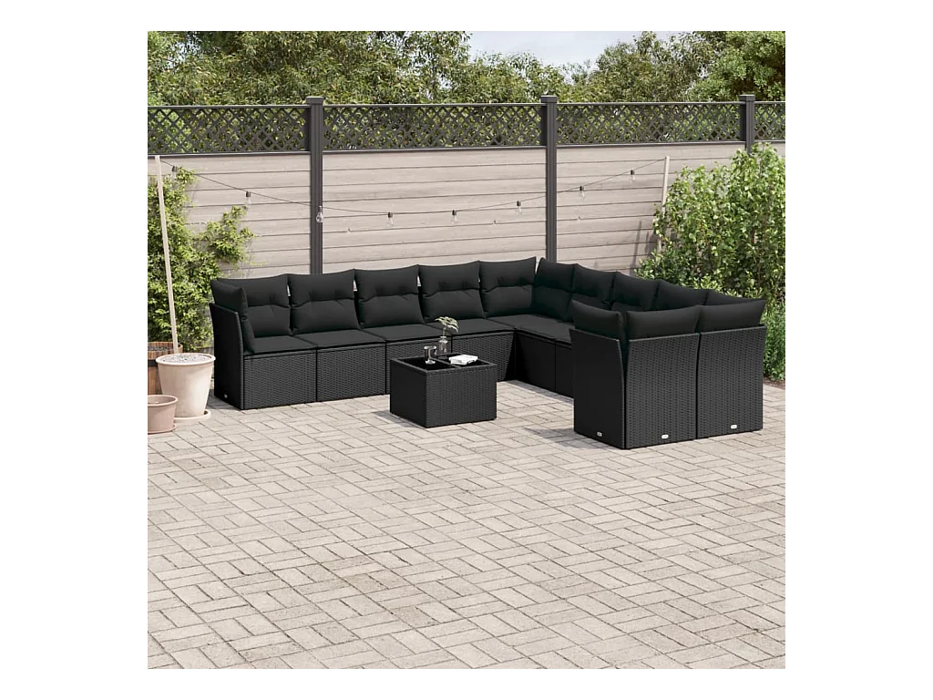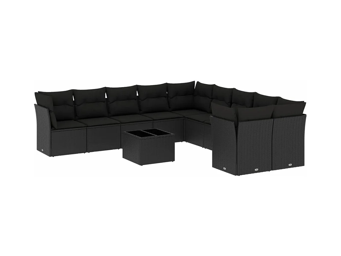 Set Divani da Giardino 11 pz con Cuscini in Polyrattan Nero
