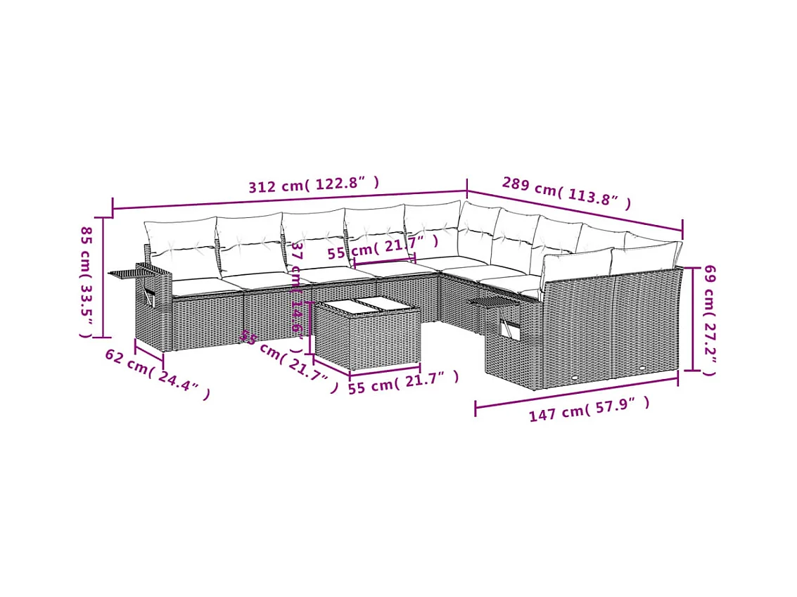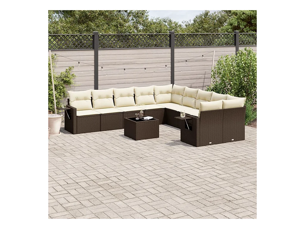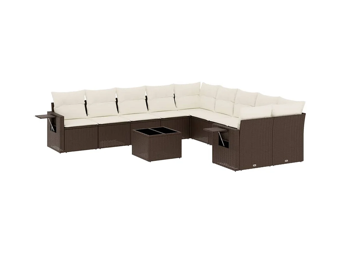 Set Divani da Giardino 11 pz con Cuscini Polyrattan Marrone