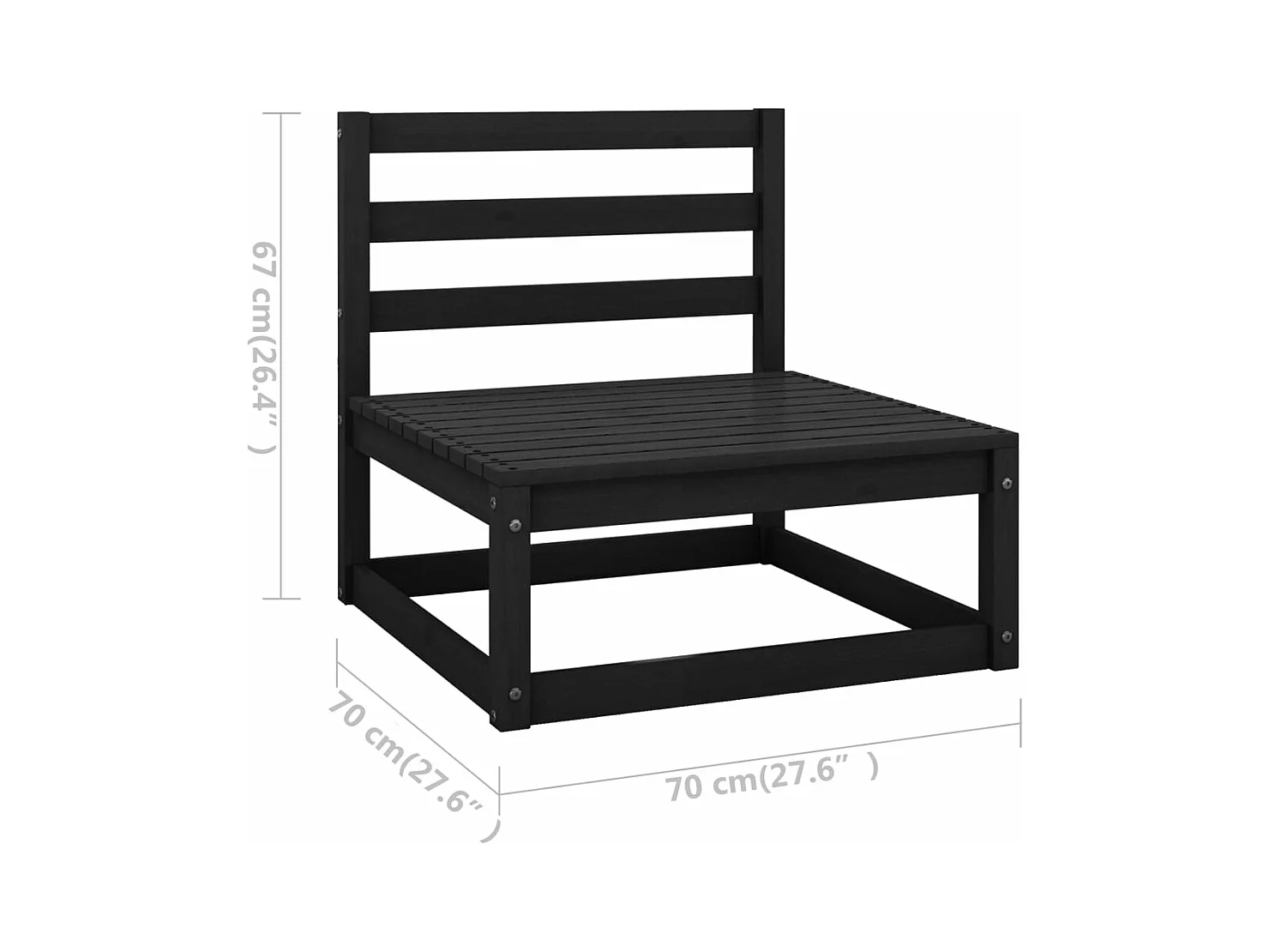 Set Divani da Giardino 2 pz Nero in Legno Massello di Pino