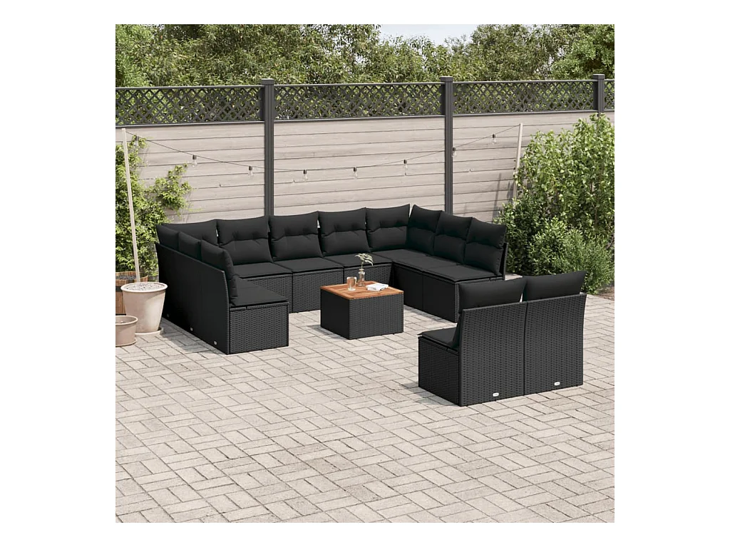 Set Divani da Giardino 12 pz con Cuscini Nero in Polyrattan