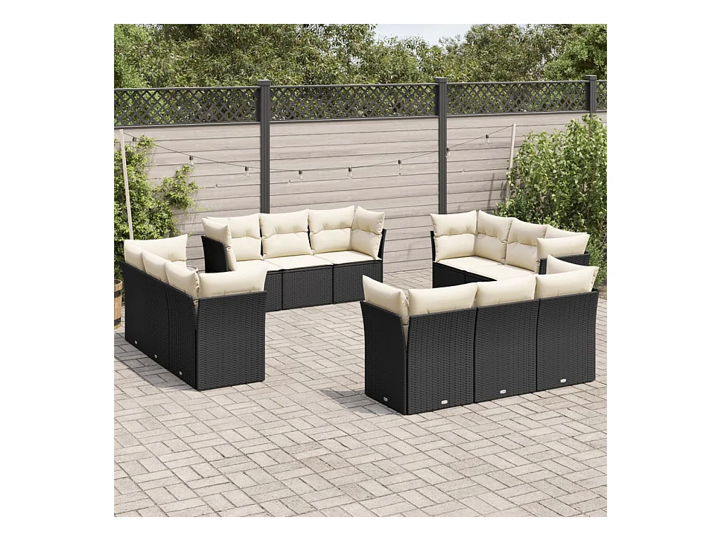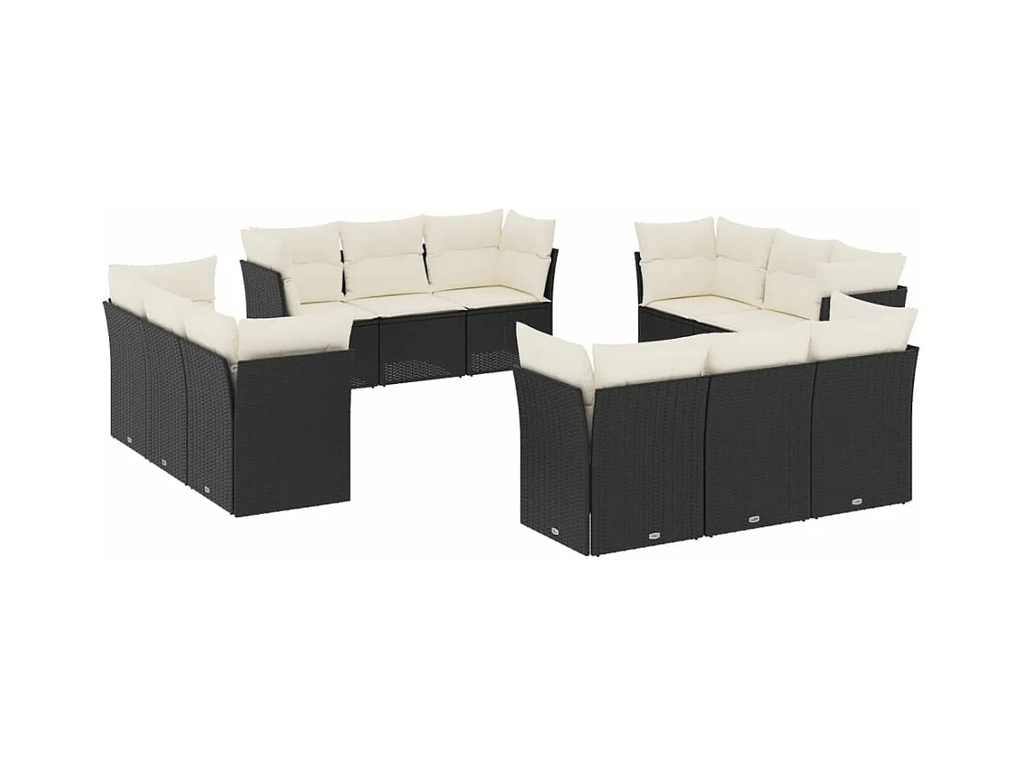 Set Divani da Giardino 12 pz con Cuscini Nero in Polyrattan