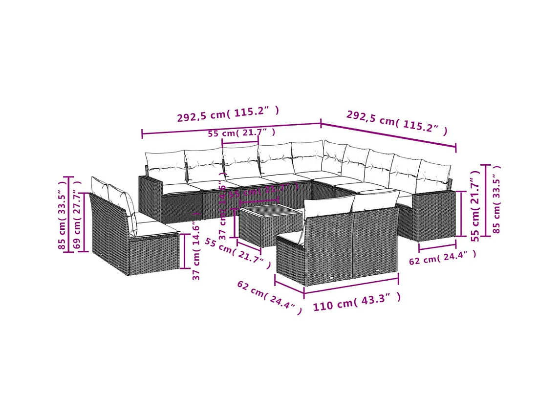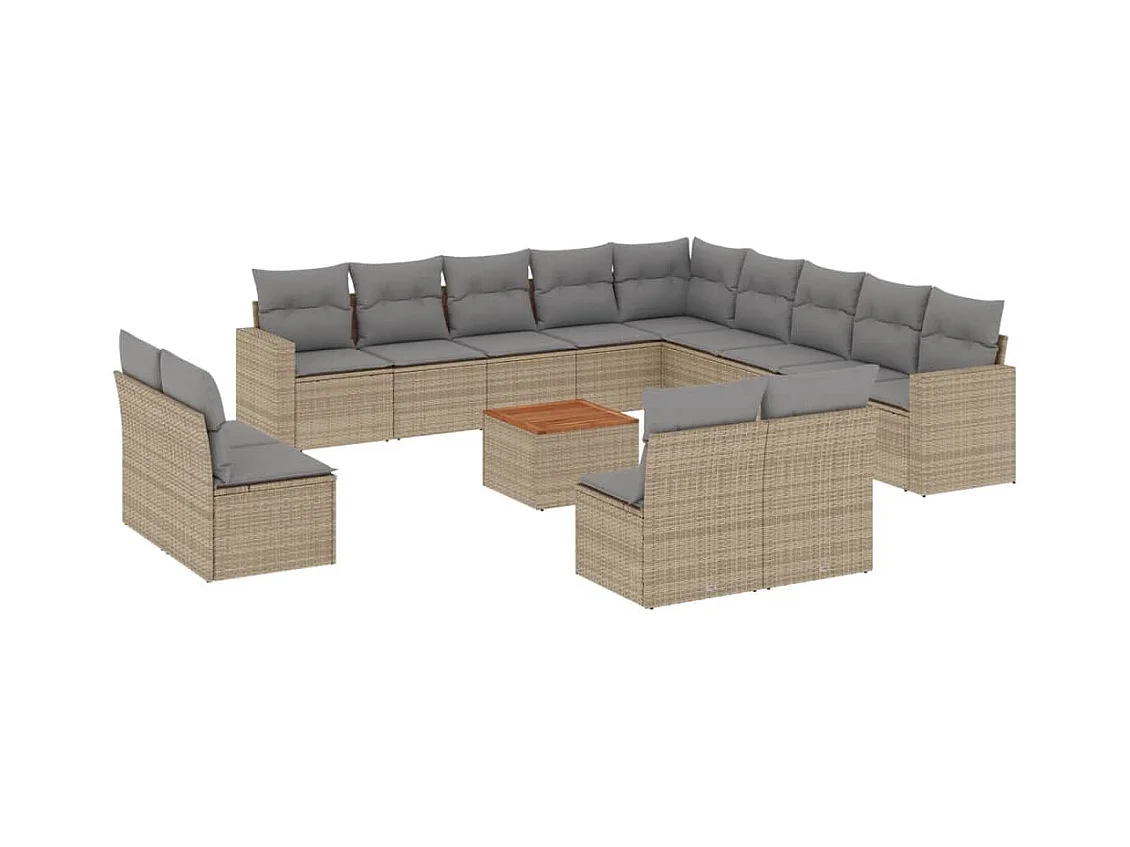Mobile da giardino con cuscini 14 pz in resina intrecciata beige