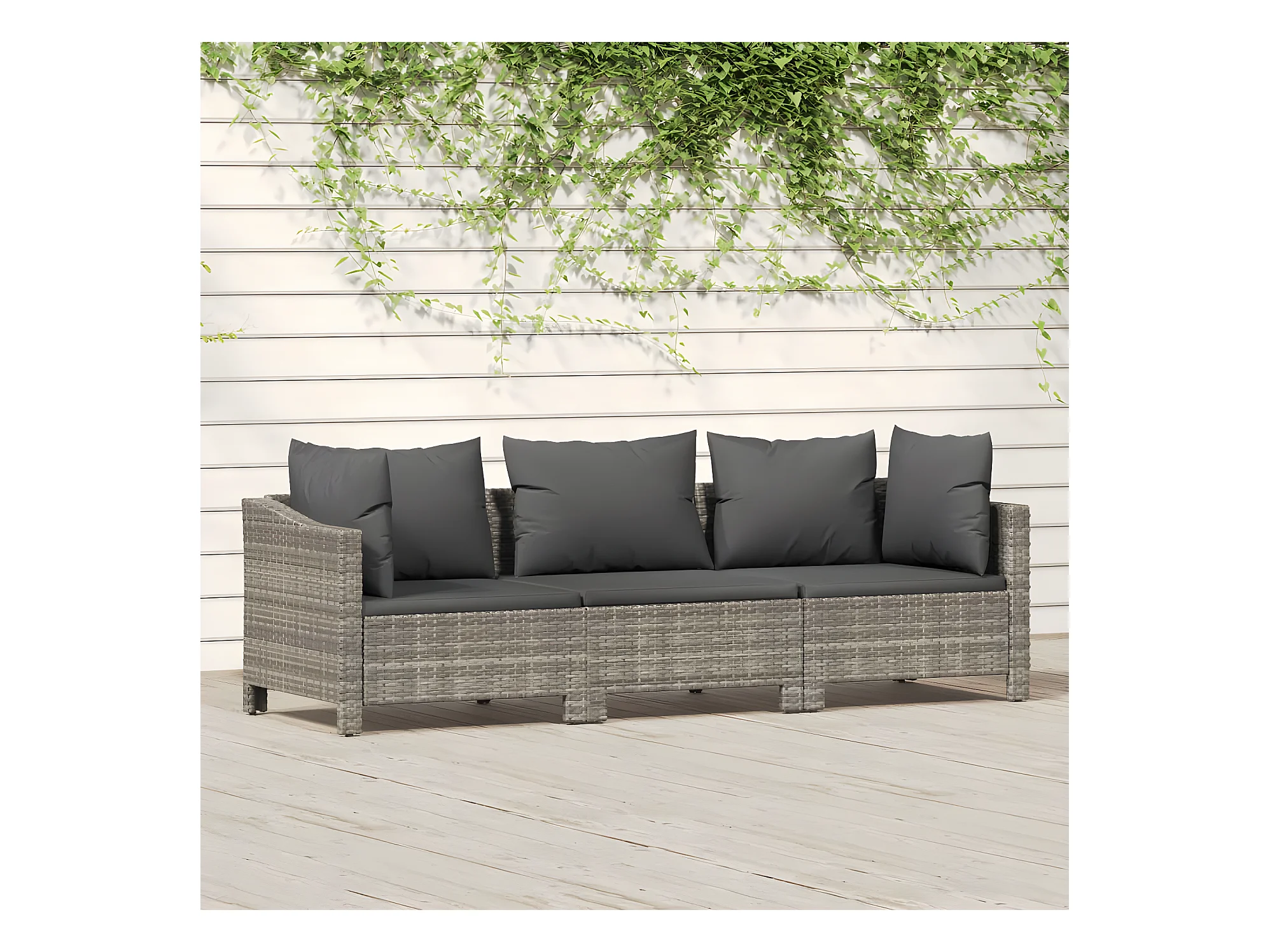 Set Divani da Giardino 3 pz con Cuscini in Polyrattan Grigio