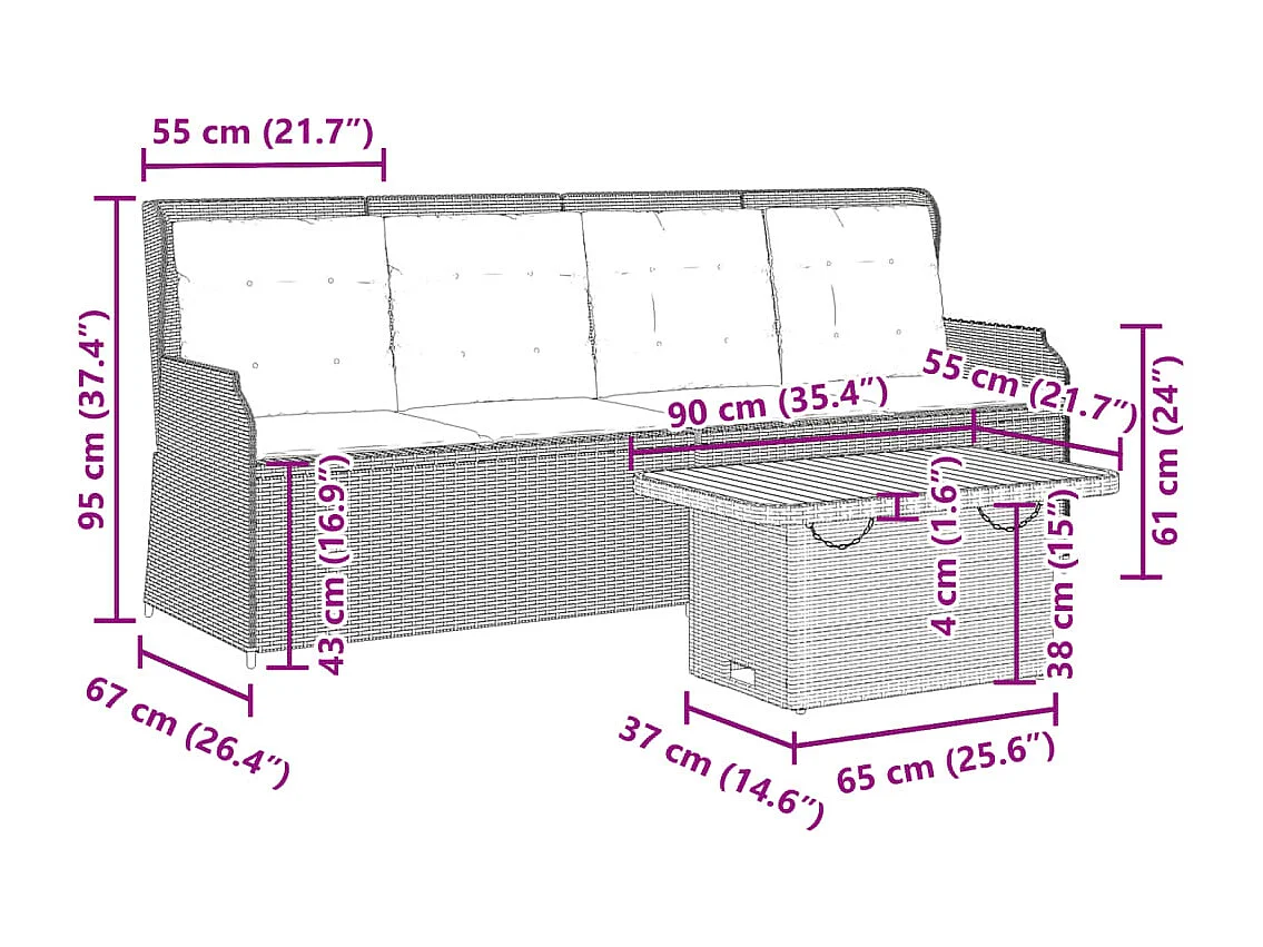 Set Divani da Giardino 4 pz con Cuscini Nero in Polyrattan
