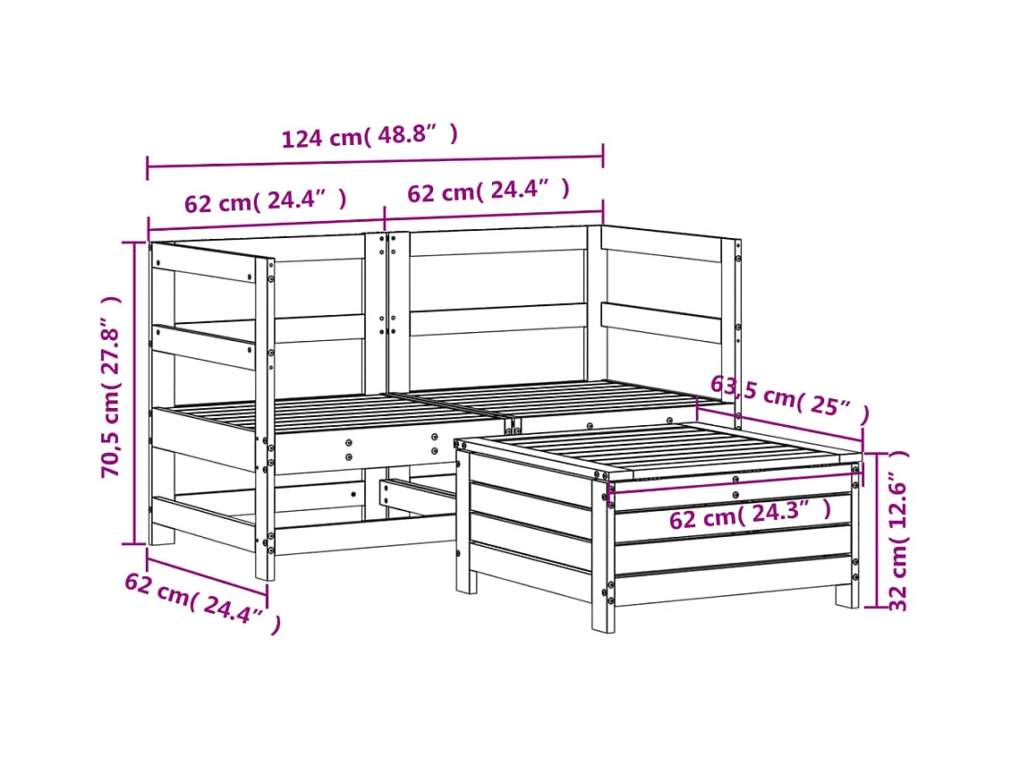 Set Divani da Giardino 3 pz in Legno Massello Abete Douglas