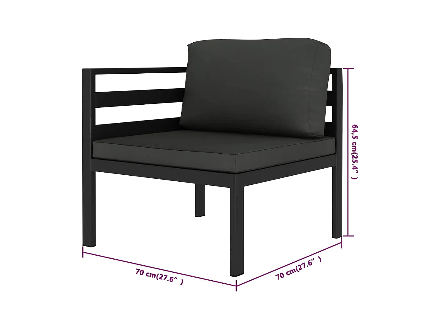 Set Divani da Giardino 7 pz con Cuscini in Alluminio Antracite