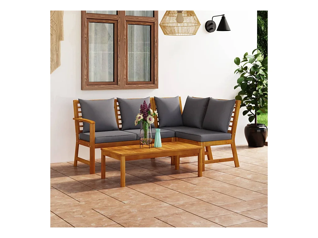 Set Divani da Giardino 4 pz con Cuscini in Massello di Acacia