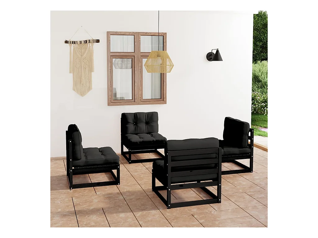 Set Divani da Giardino 4 pz con Cuscini Legno Massello Pino