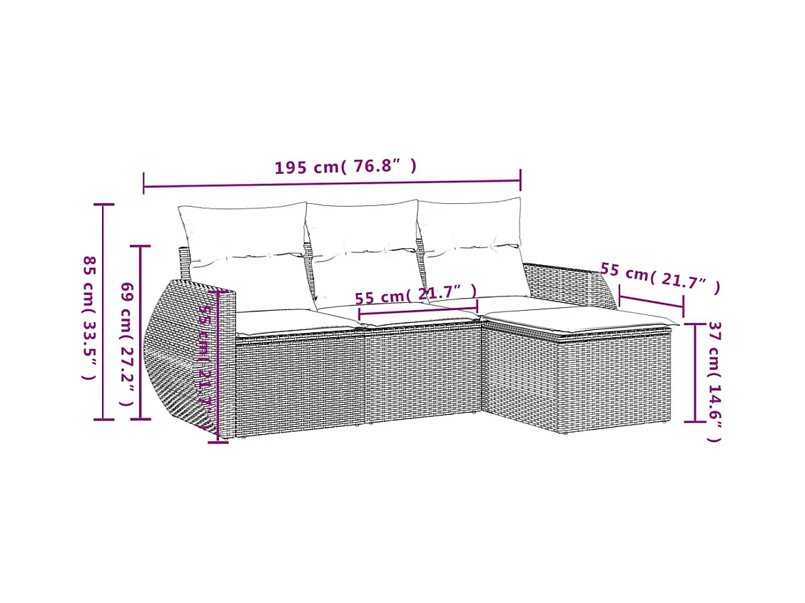 Set Divani da Giardino 4 pz con Cuscini Nero in Polyrattan