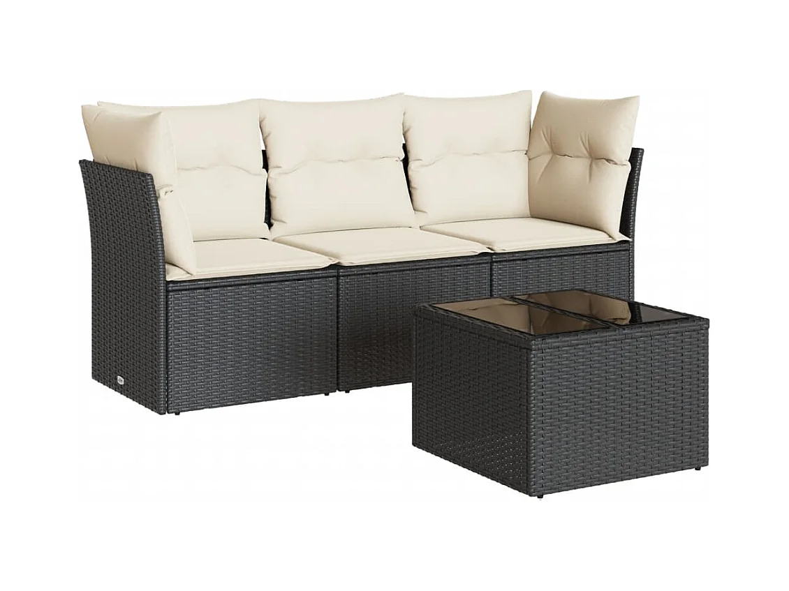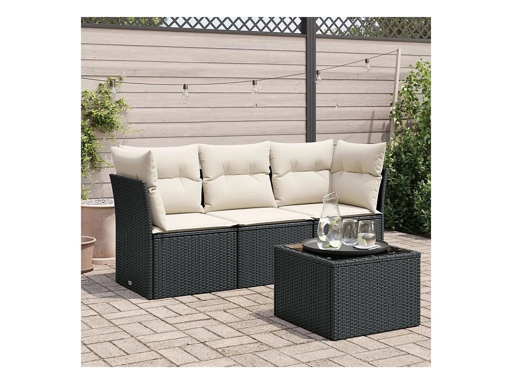 Set Divani da Giardino 4 pz con Cuscini Nero in Polyrattan