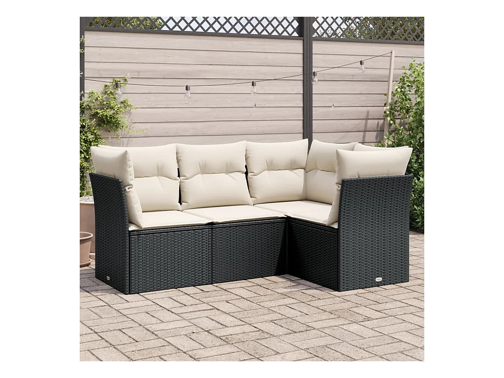 Set Divani da Giardino 4 pz con Cuscini Nero in Polyrattan