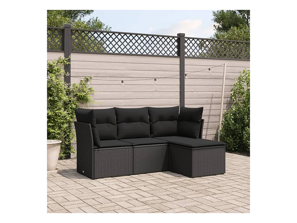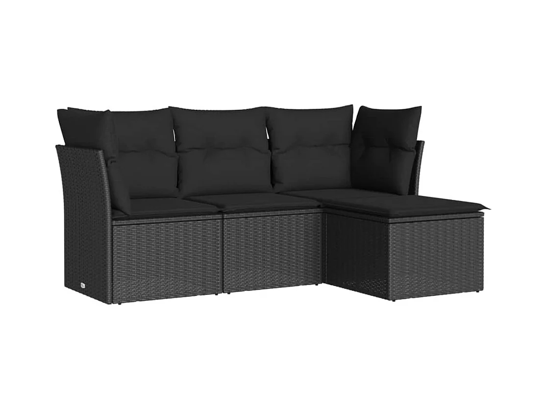 Set Divani da Giardino 4 pz con Cuscini Nero in Polyrattan
