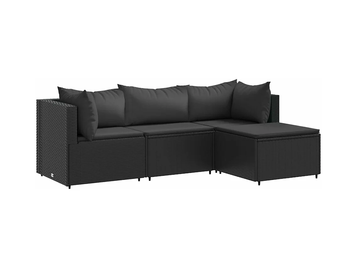 Set Divani da Giardino 4 pz con Cuscini Nero in Polyrattan