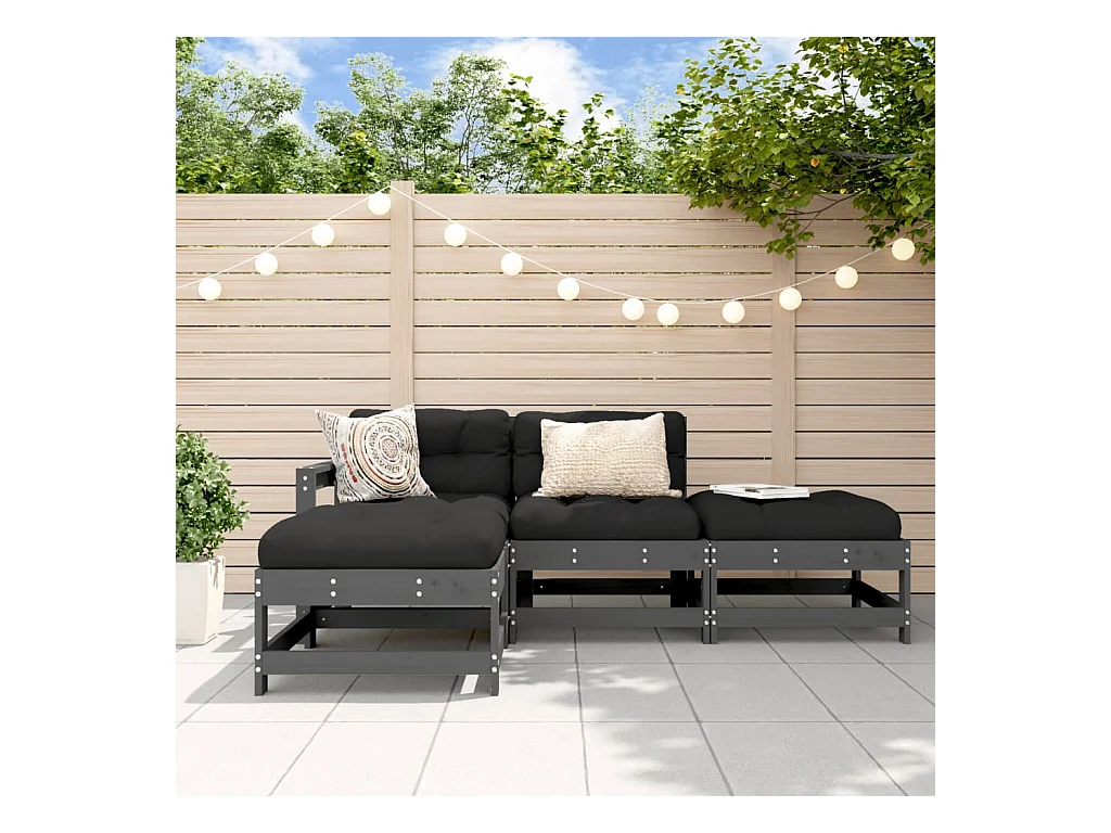 Set Divani da Giardino 4 pz con Cuscini Grigi Massello di Pino