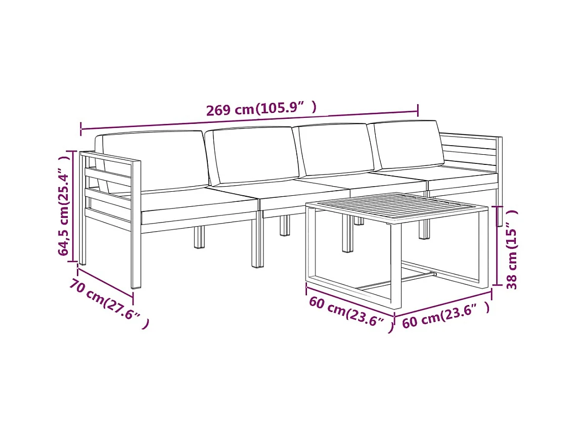 Set Divani da Giardino 5 pz con Cuscini in Alluminio Antracite