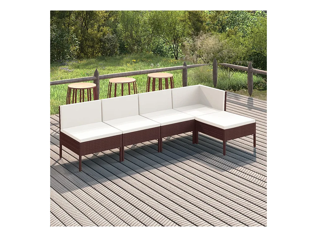 Set Divano da Giardino 5 pz con Cuscini Marrone in Polyrattan