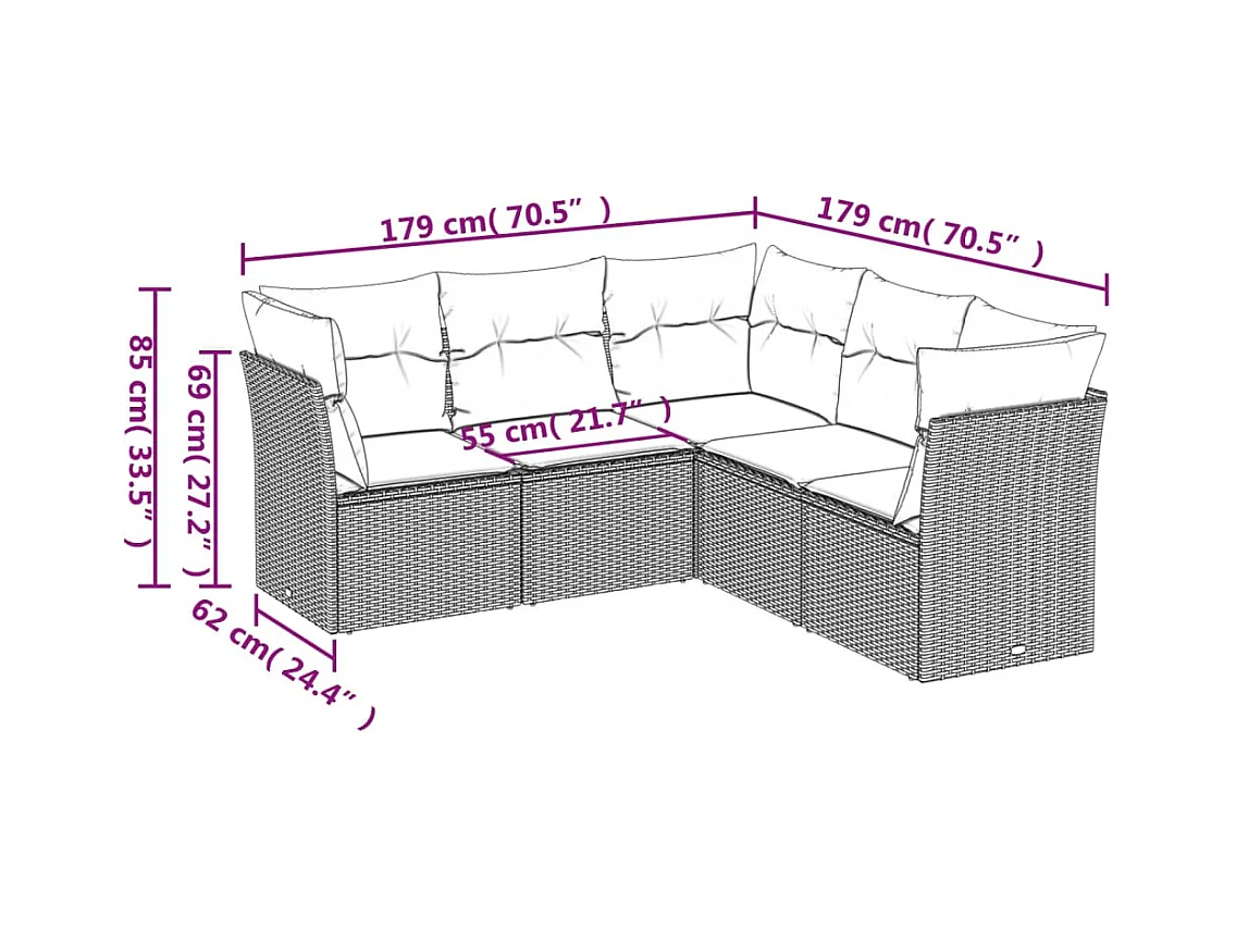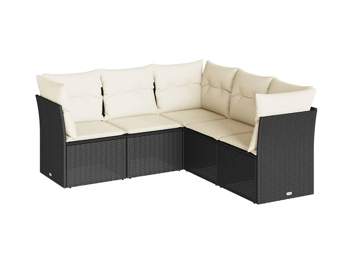 Set Divani da Giardino 5 pz con Cuscini in Polyrattan Nero