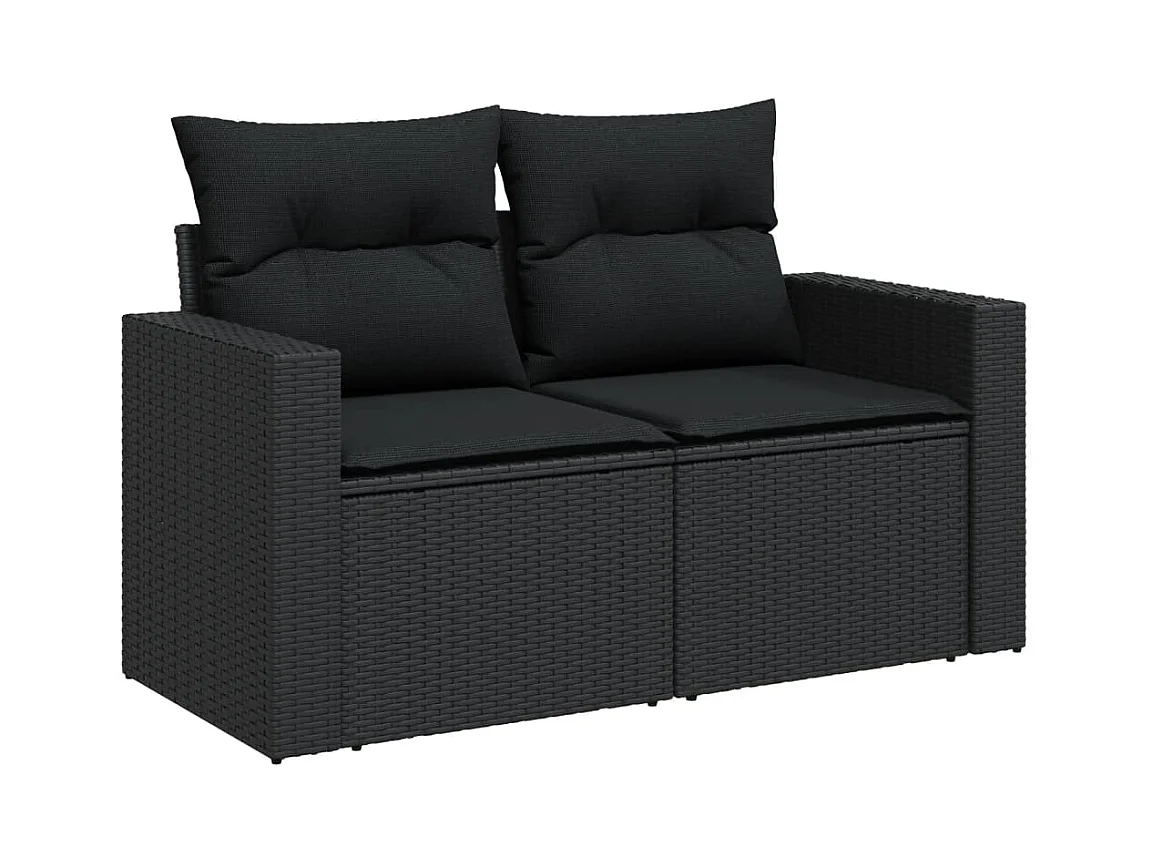 Set Divani da Giardino con Cuscini 7pz Nero Polyrattan