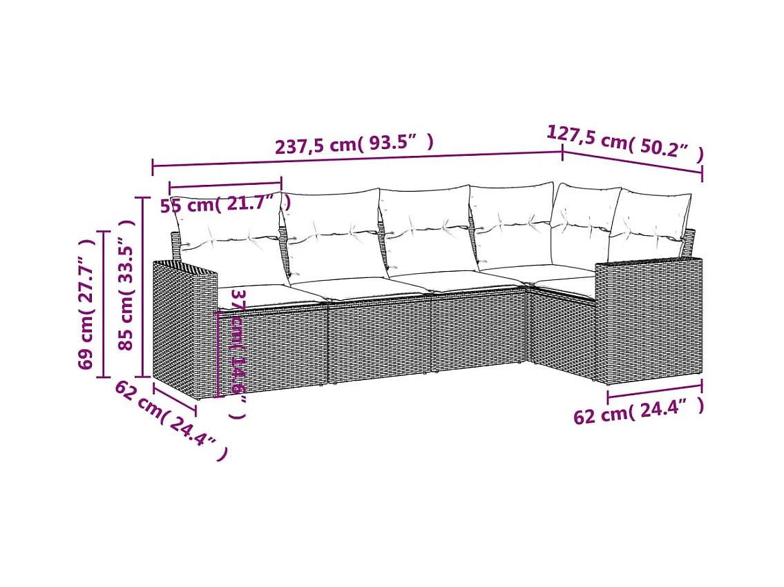 Set Divani da Giardino 4 pz con Cuscini Nero in Polyrattan