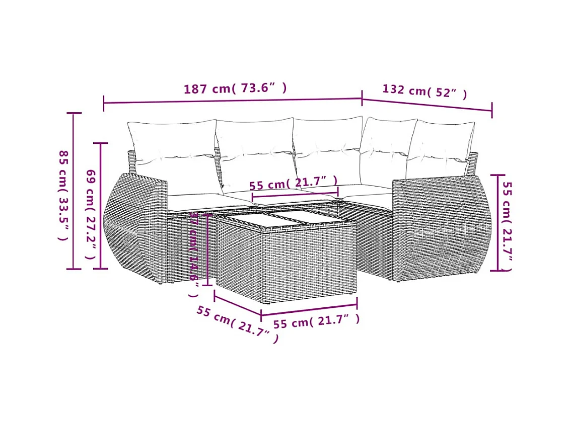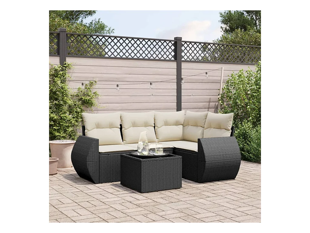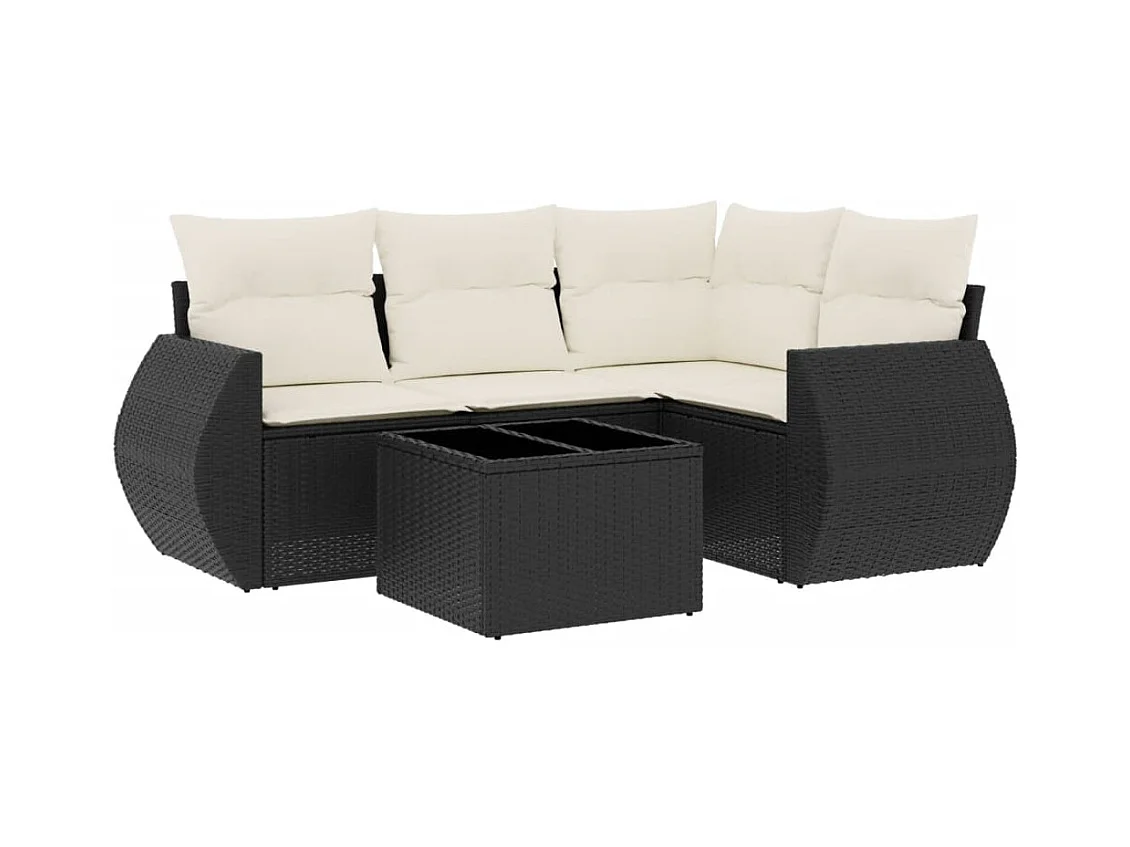 Set Divani da Giardino 5 pz con Cuscini in Polyrattan Nero