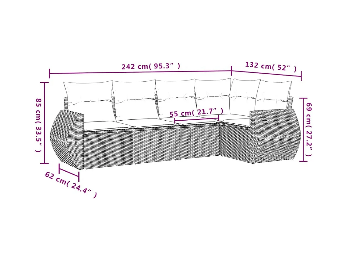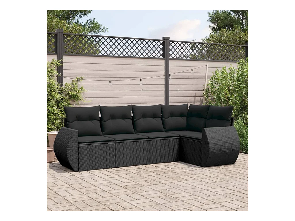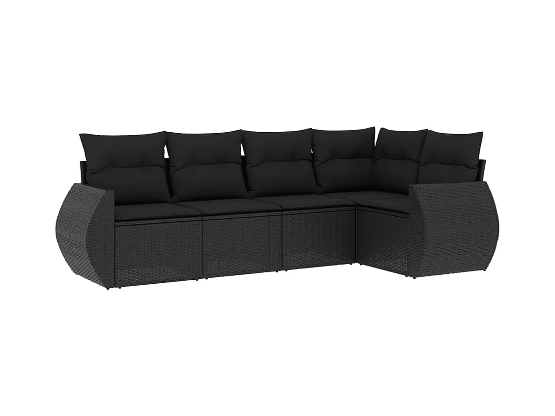 Set Divani da Giardino 5 pz con Cuscini in Polyrattan Nero