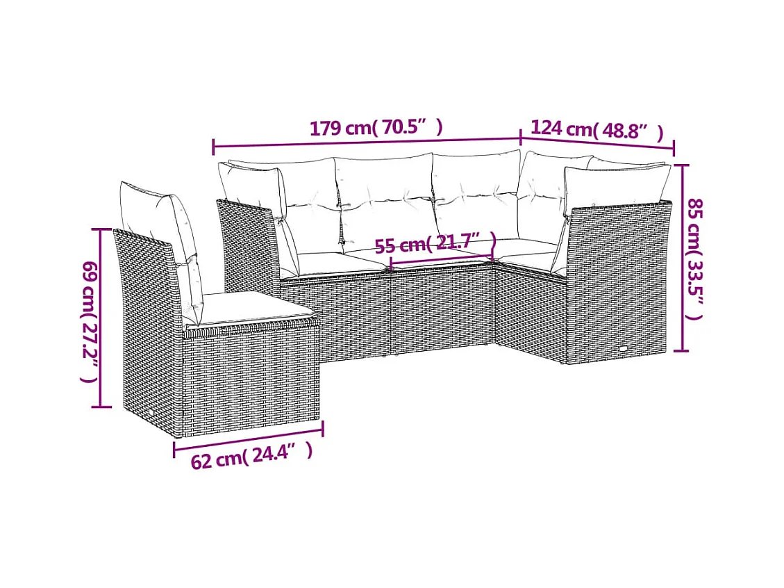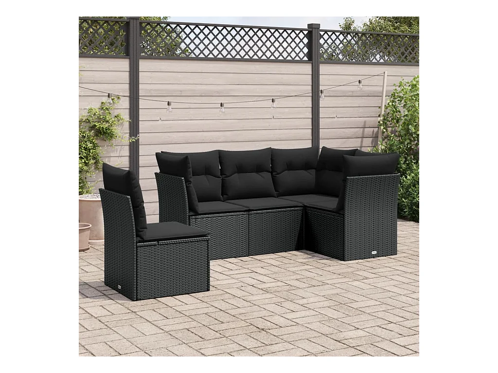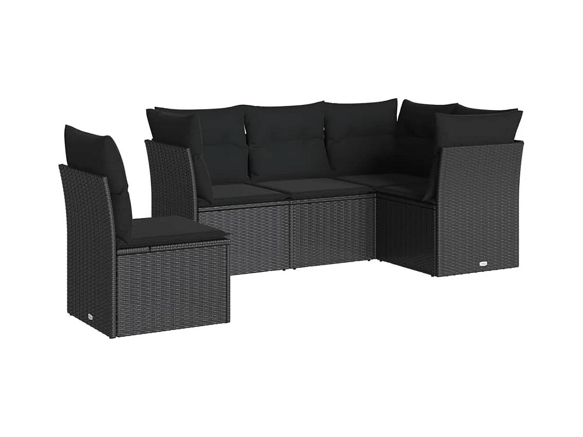 Set Divani da Giardino 5 pz con Cuscini in Polyrattan Nero