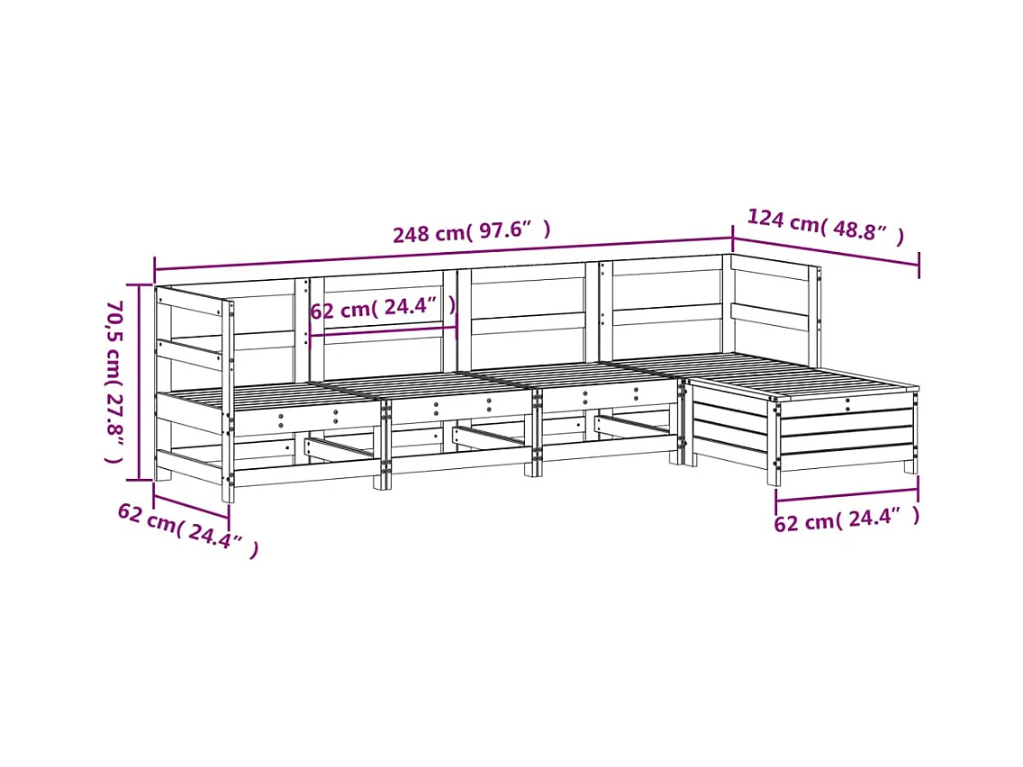 Set Divani da Giardino 5 pz in Legno Massello di Pino