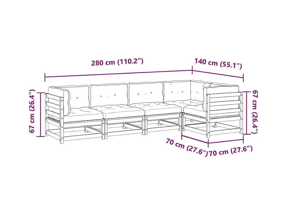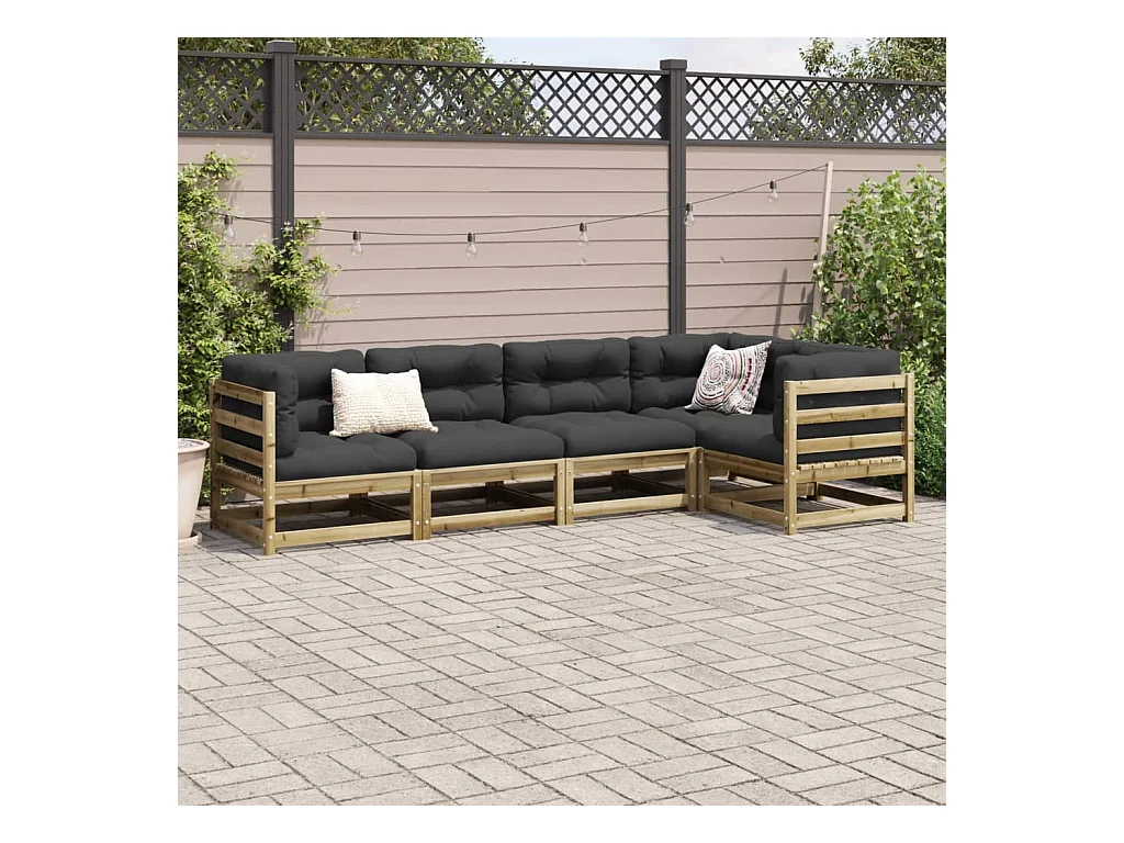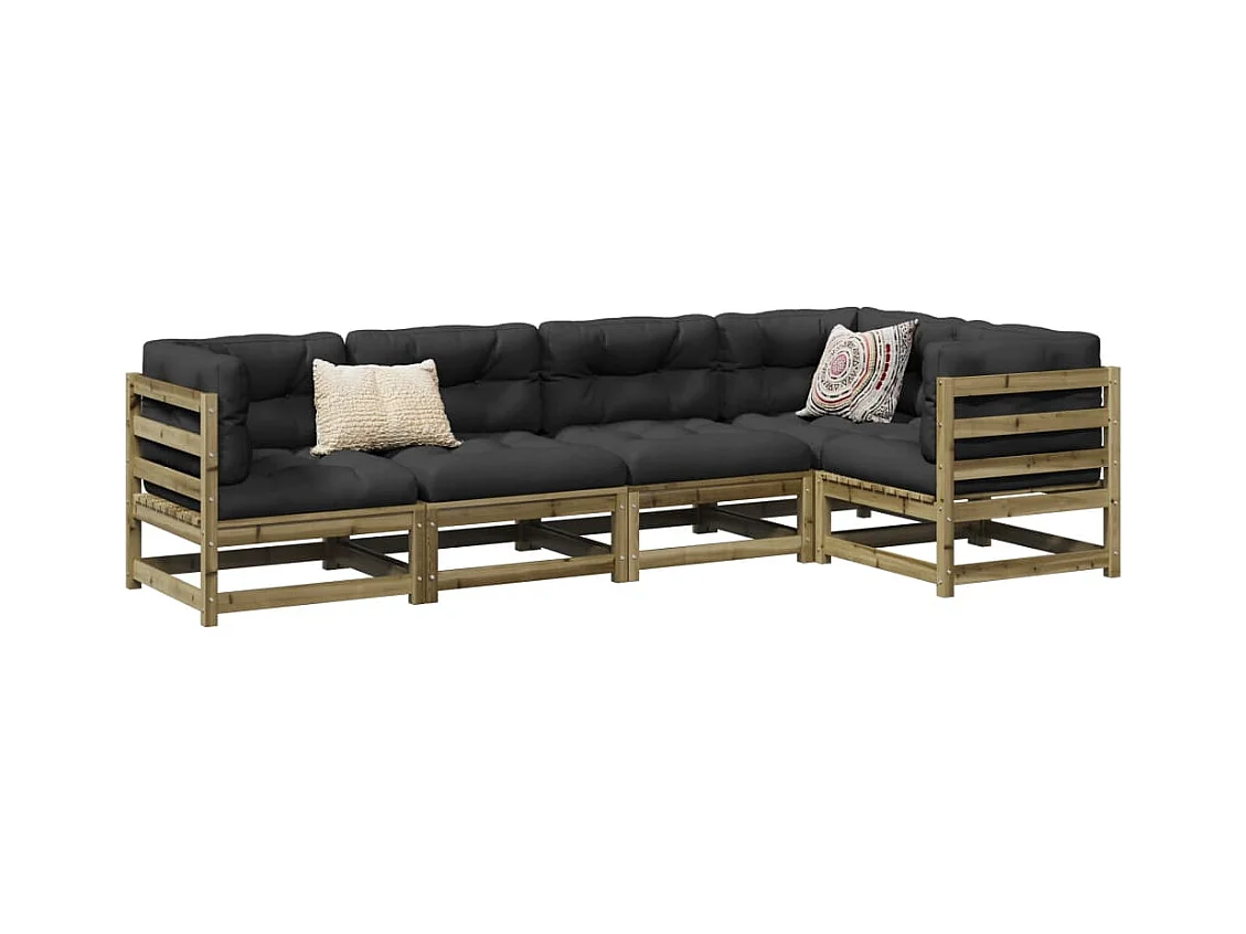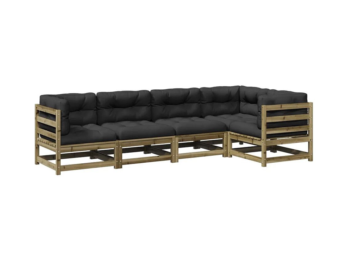 Set Divani da Giardino 5pz con Cuscini Legno Impregnato di Pino