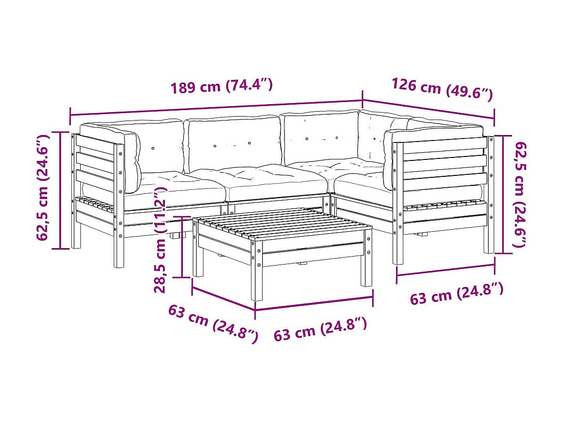 Set Divani da Giardino 5pz con Cuscini Legno Impregnato di Pino