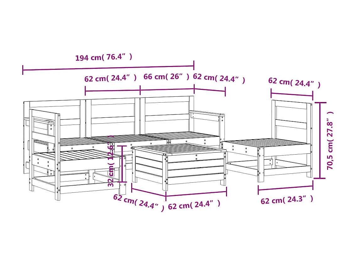 Set Salotto da Giardino 8 pz in Legno Massello di Pino Bianco
