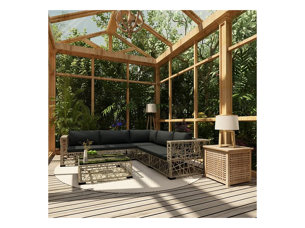 Set Divani da Giardino 6 pz con Cuscini in Polyrattan Grigio
