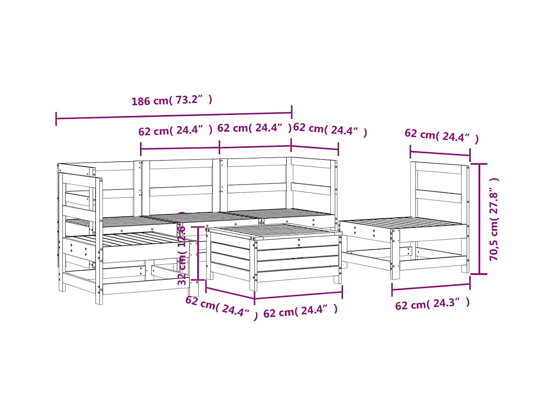 Set Divani da Giardino 6 pz in Legno Impregnato di Pino