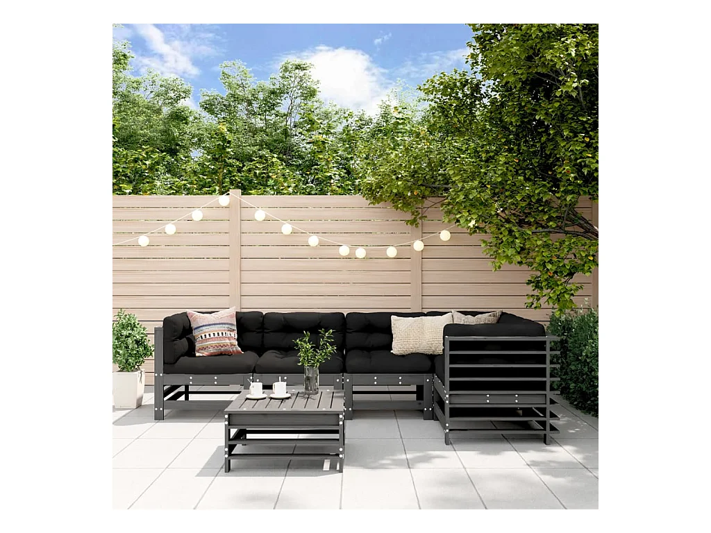 Set Divani da Giardino 7 pz con Cuscini Grigi Massello di Pino