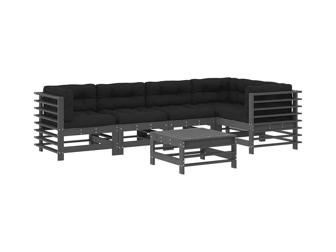 Set Divani da Giardino 6 pz con Cuscini Grigi Massello di Pino