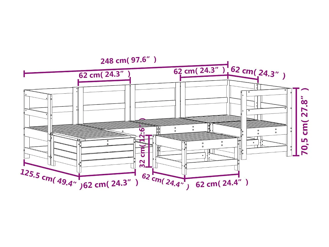 Set Divani da Giardino 7 pz Bianco in Legno Massello di Pino