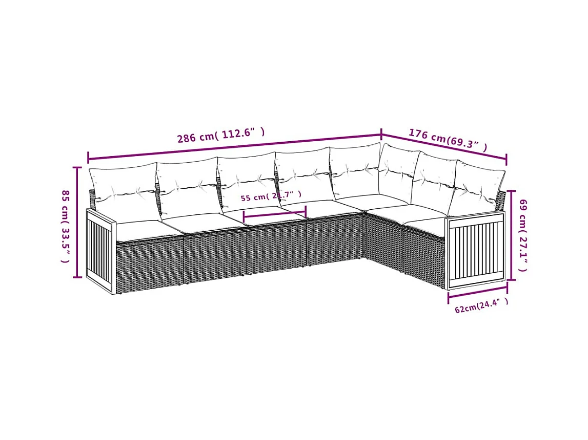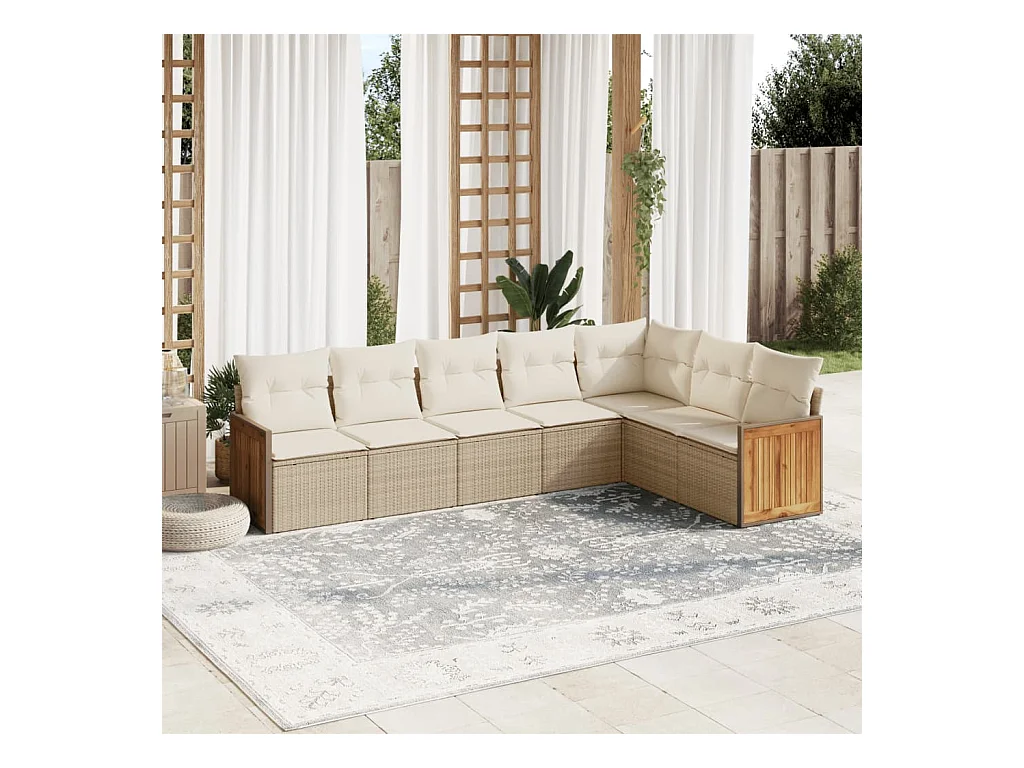 Set Divani da Giardino 7 pz con Cuscini Beige in Polyrattan