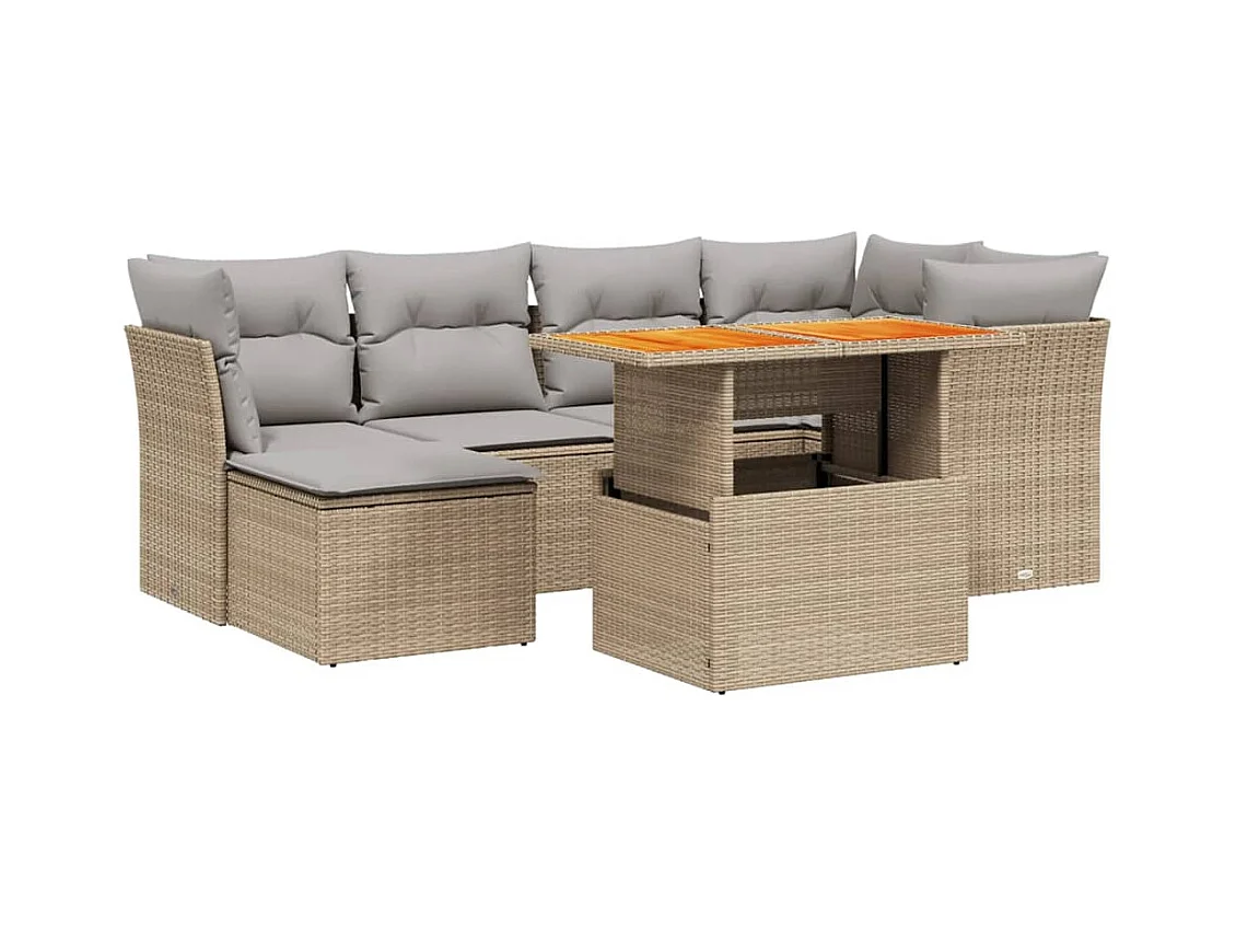 Set Divani da Giardino 7 pz con Cuscini Beige in Polyrattan