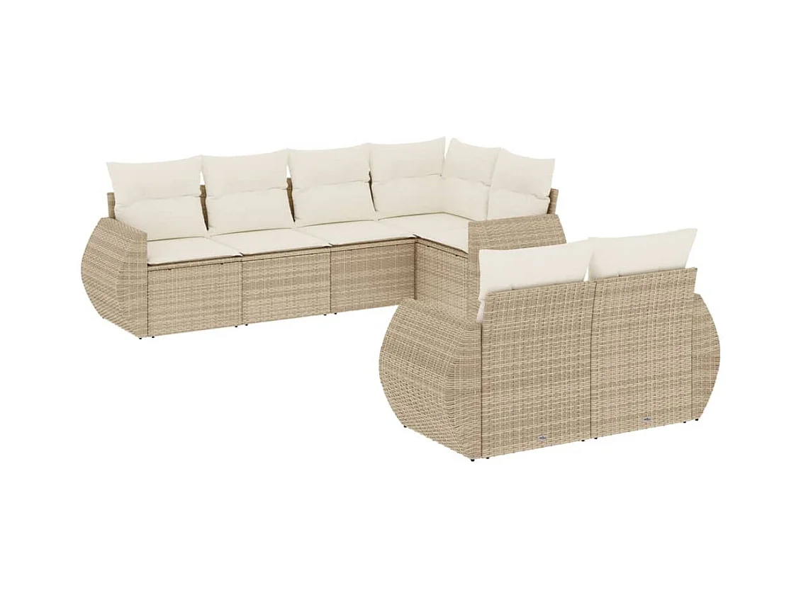 Set Divani da Giardino 7 pz con Cuscini Beige in Polyrattan