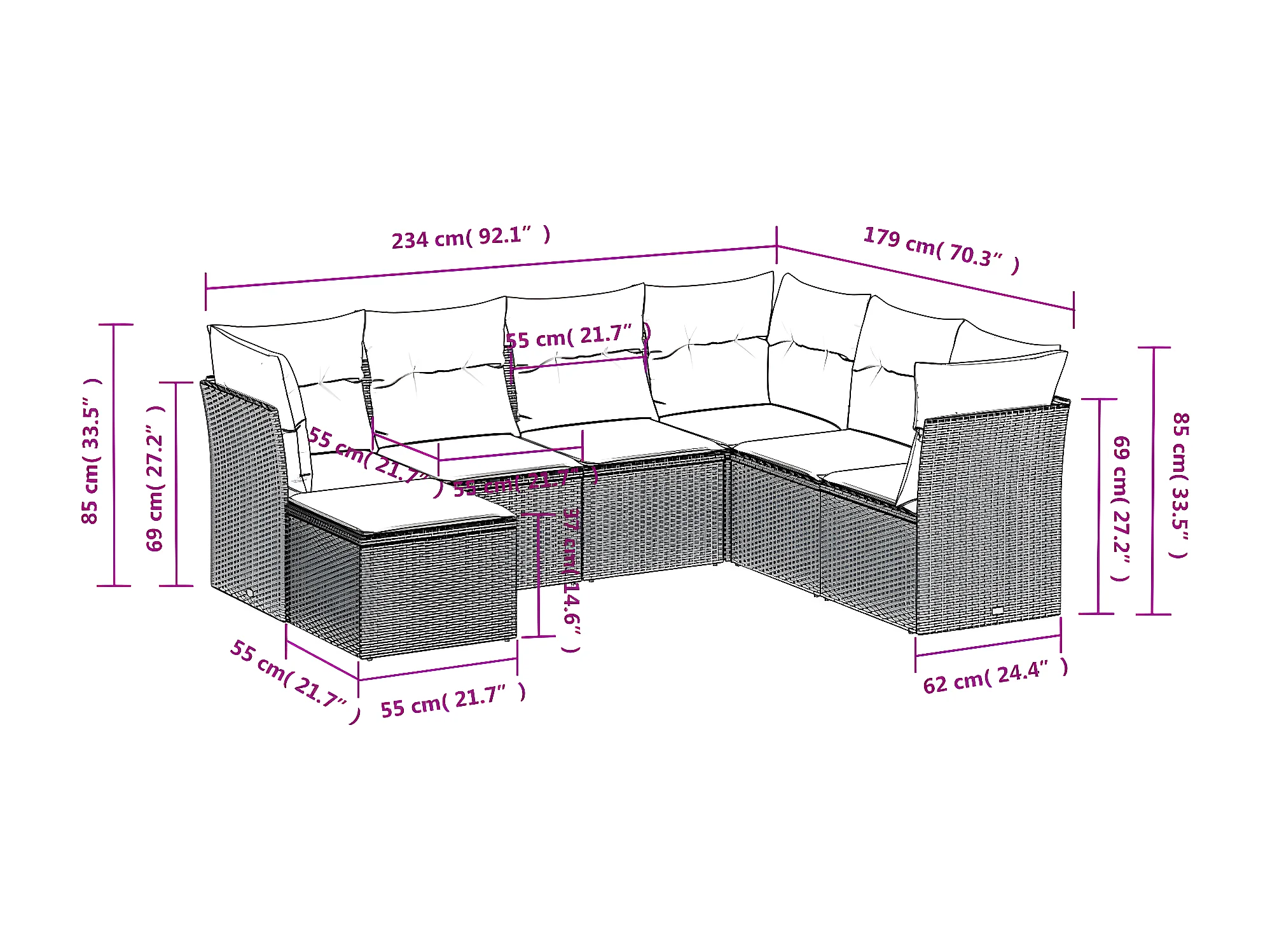 Set Divani da Giardino 7 pz con Cuscini Beige in Polyrattan