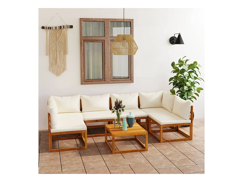 Set Divani da Giardino 7 pz con Cuscini Crema Massello Acacia